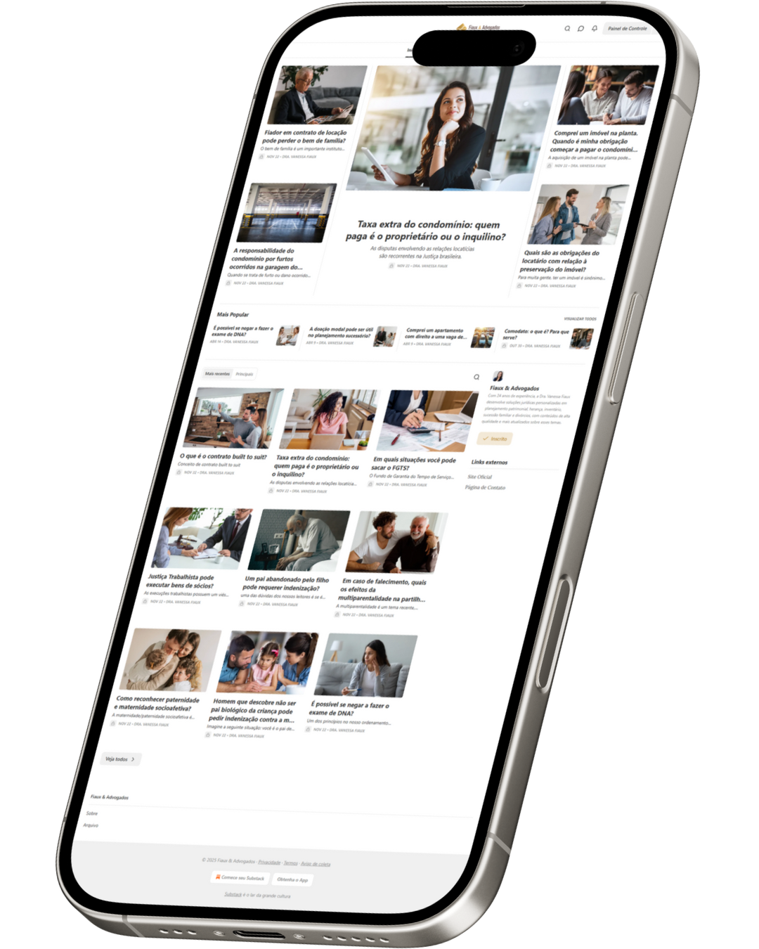 Além da prática jurídica, dedica-se à produção de conteúdo qualificado que aproxima o Direito da vida cotidiana. É autora das seções Café com Advogada e Fiaux News, publicadas no Substack, onde compartilha análises, interpretações e reflexões sobre os temas que fazem parte do dia a dia da advocacia patrimonial, sempre com linguagem acessível e profundo compromisso com a qualidade.
